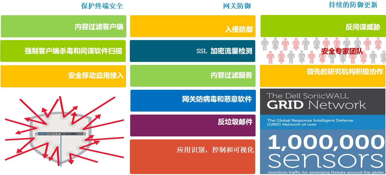 SonicWALL下一代防火墙提供多层次的应用层威胁防御: